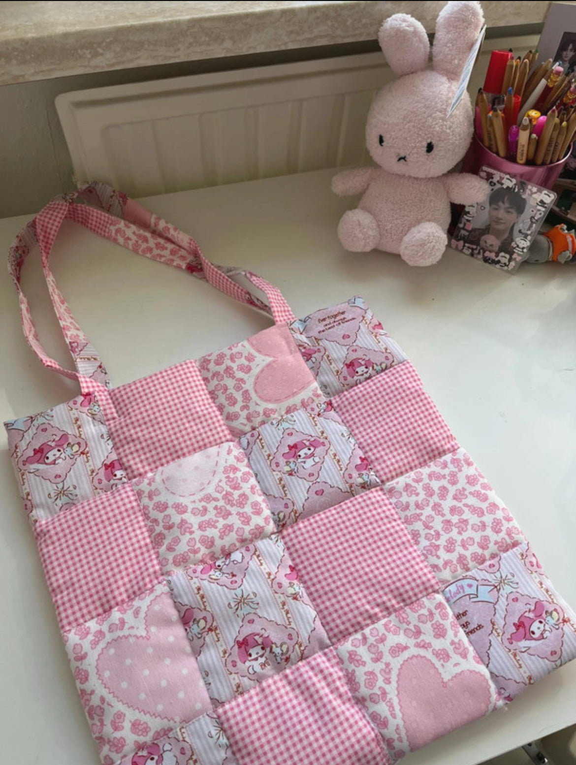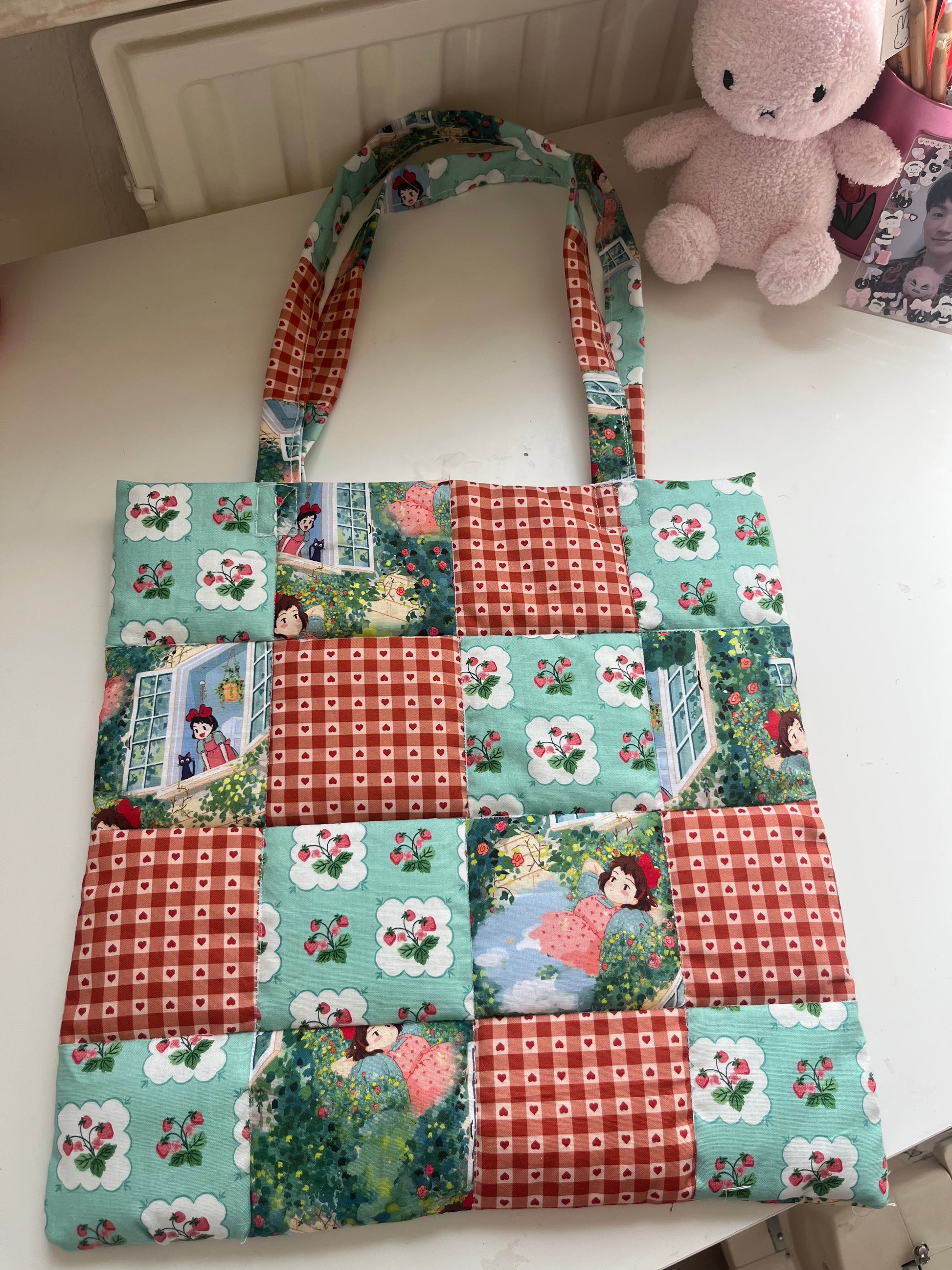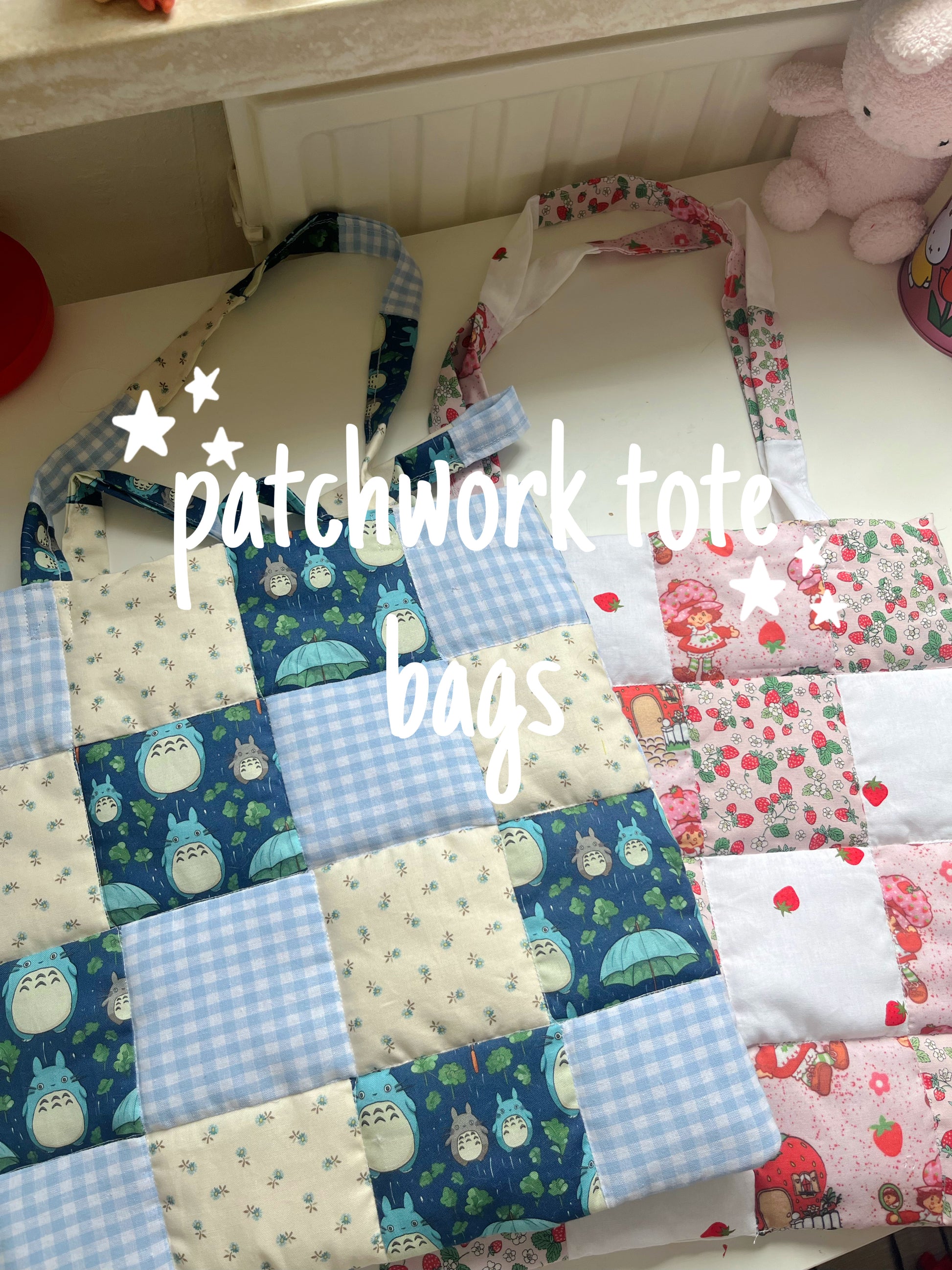 handmade padded patchwork tote bags