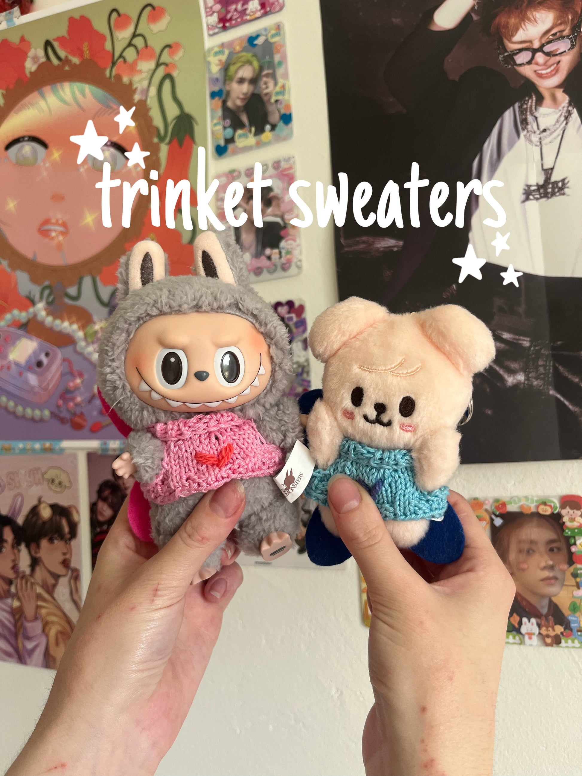Miniature sweaters to fit labubu, mini skzoos and mini aniteez